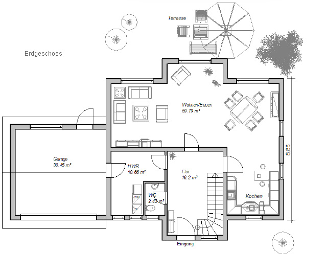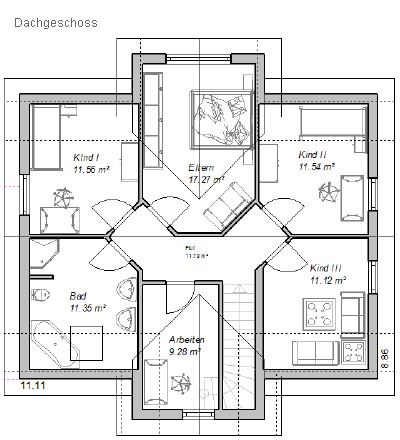 Dieser Grundriss ist wie geschaffen für eine Familie mit zwei bis drei Kindern.