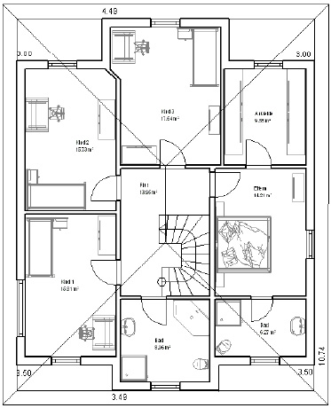 Hier ist genügend Platz für das Elternschlafzimmer mit Ankleide und direkt zugänglichem Bad, sowie drei Kinderzimmer mit