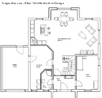 Quadratischer oder rechteckiger Grundriss mit einem perfekt platzierten Eingangsbereich, licht durchflutete Räume durch bodentiefe Fensterelemente, sowie ein Zeltdach wirken einladend