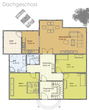 Eltern, Kinder und Enkel werden durch das Generationenhaus mit zwei Vollgeschossen zusammen unter ein Dach gebracht.