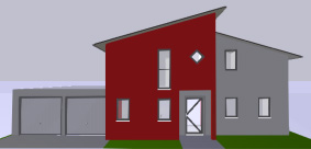Zwei gegeneinander gesetzte Pultdächer unterstreichen die eigenständige Linie dieses Hauses.