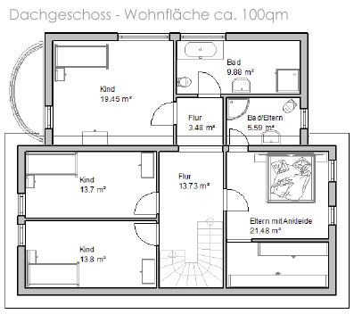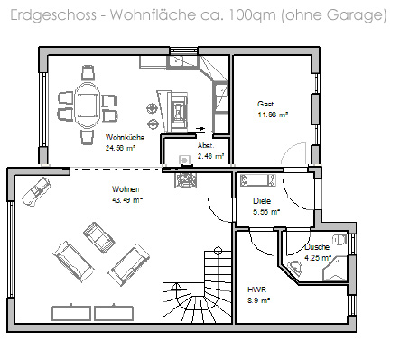 Wohnfläche: EG ca. 100qm ohne Garage, DG ca. 100qm, 5 Schlafzimmer